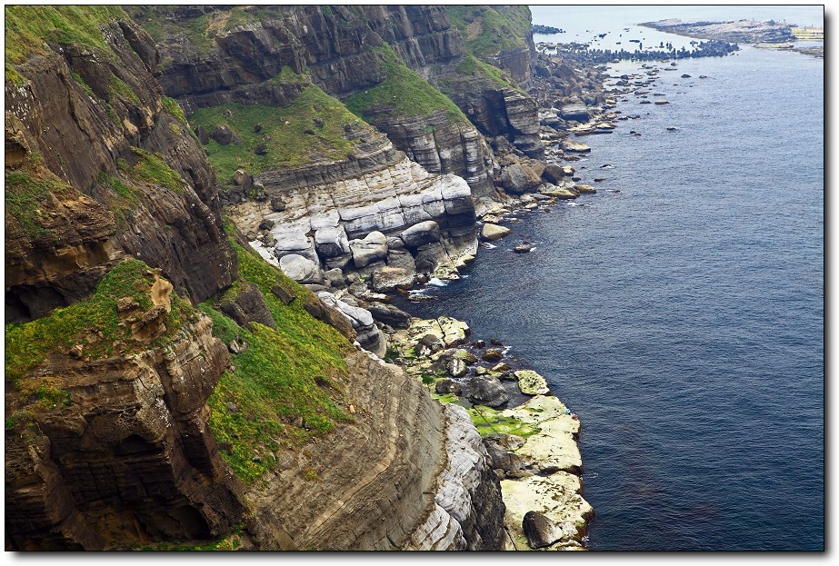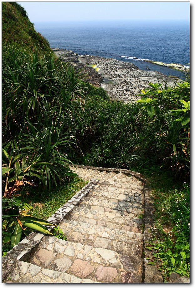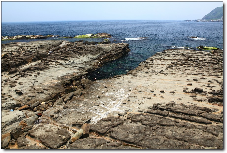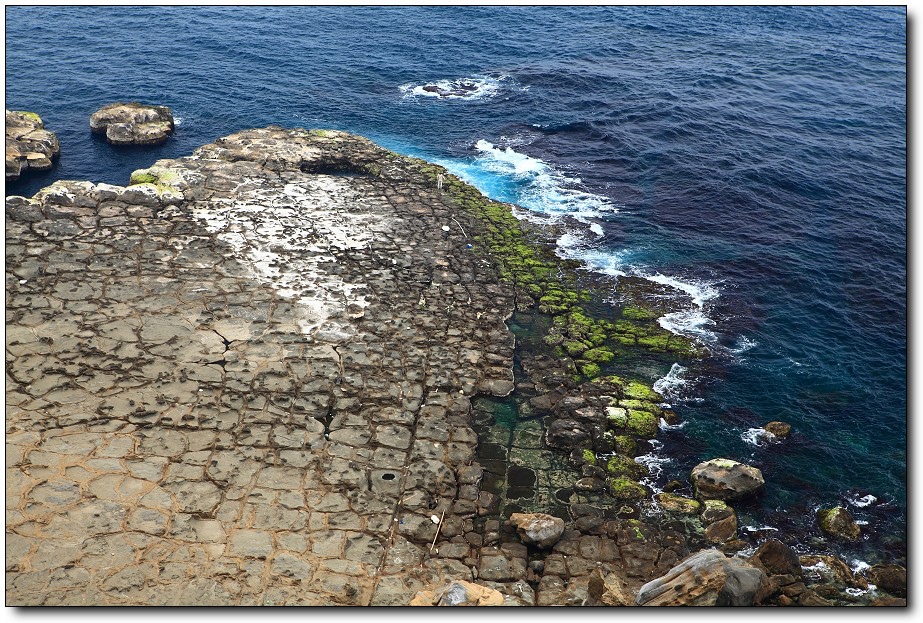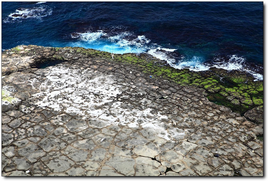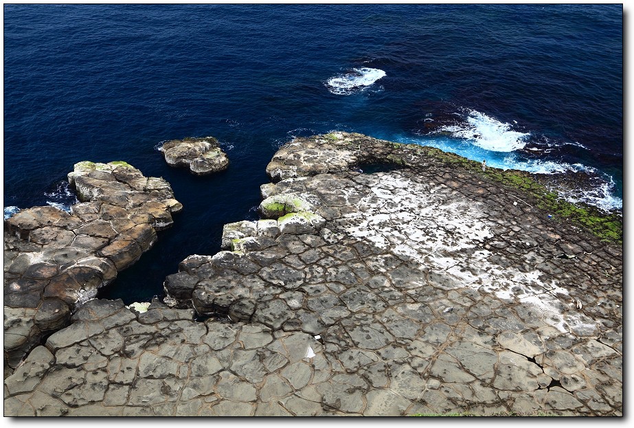 這樣由上往下拍的照片讓我想起之前有一個攝影集叫做「從空中看地球」,我想這樣壯麗的海蝕平台畫面也應該入選才是,呵呵!![]()