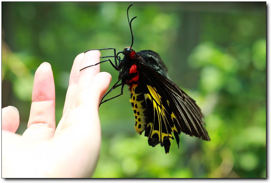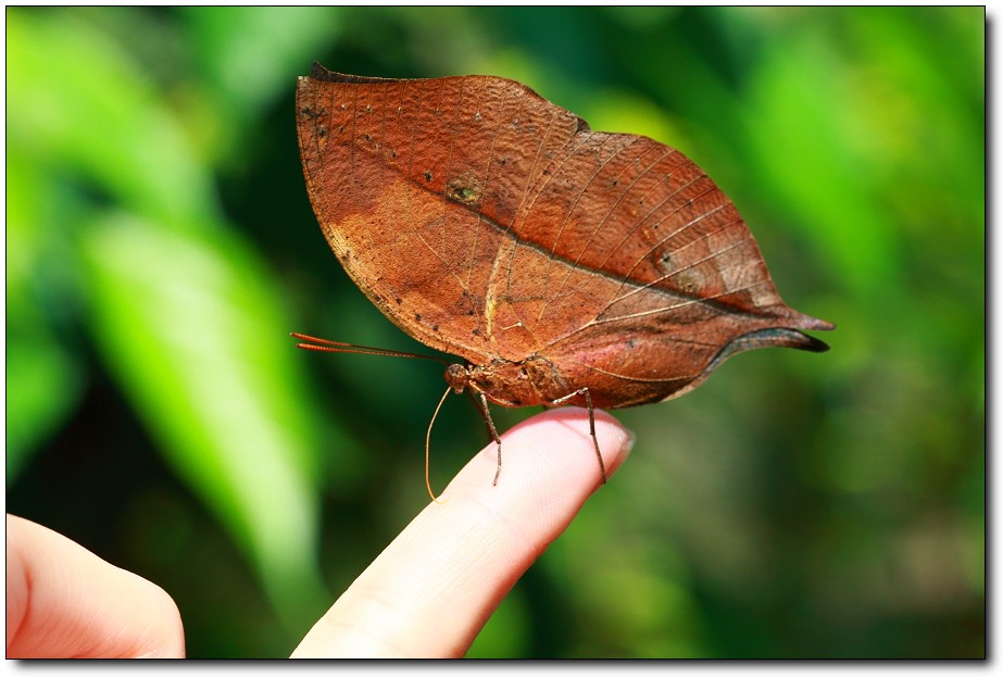另外值得一提的是,這裡的蝴蝶就屬枯葉蝶最愛跟人親近,瞧牠乖乖的停在我們的手上,真是可愛極了!