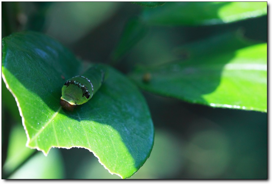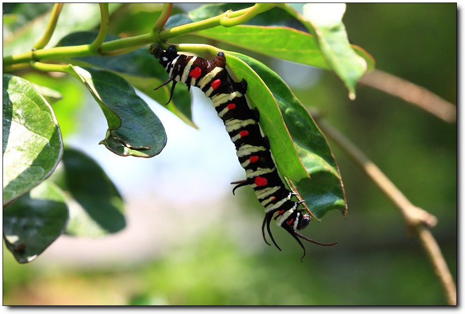 這隻長得很卡通化的幼蟲則是大鳳蝶的幼蟲,很可愛吧!