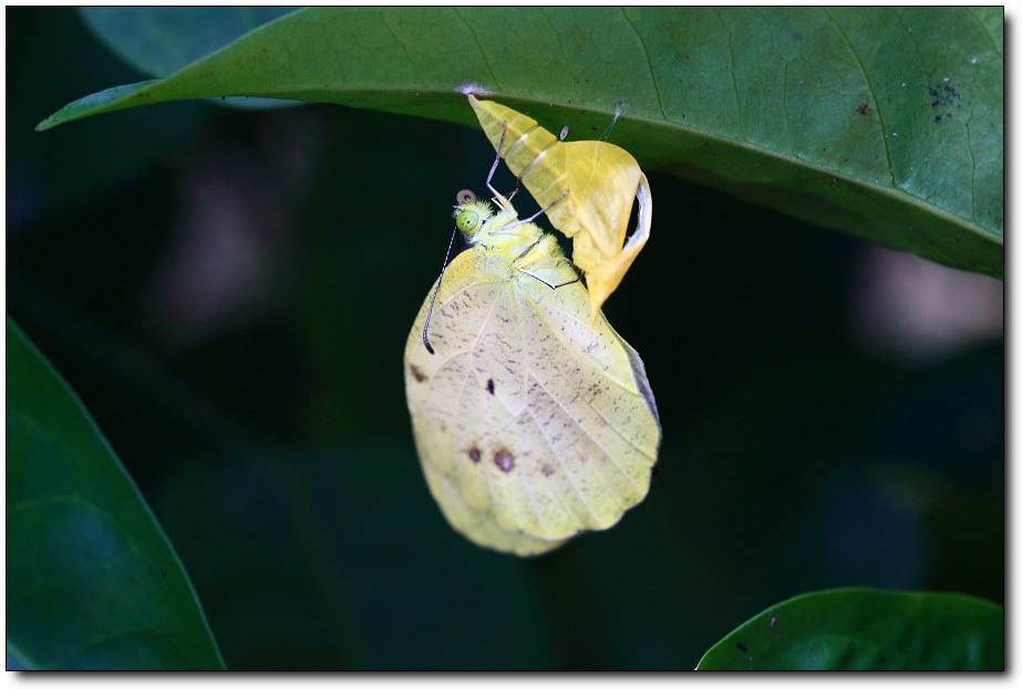 剛羽化的淡黃蝶,正在把牠的翅膀曬乾。
