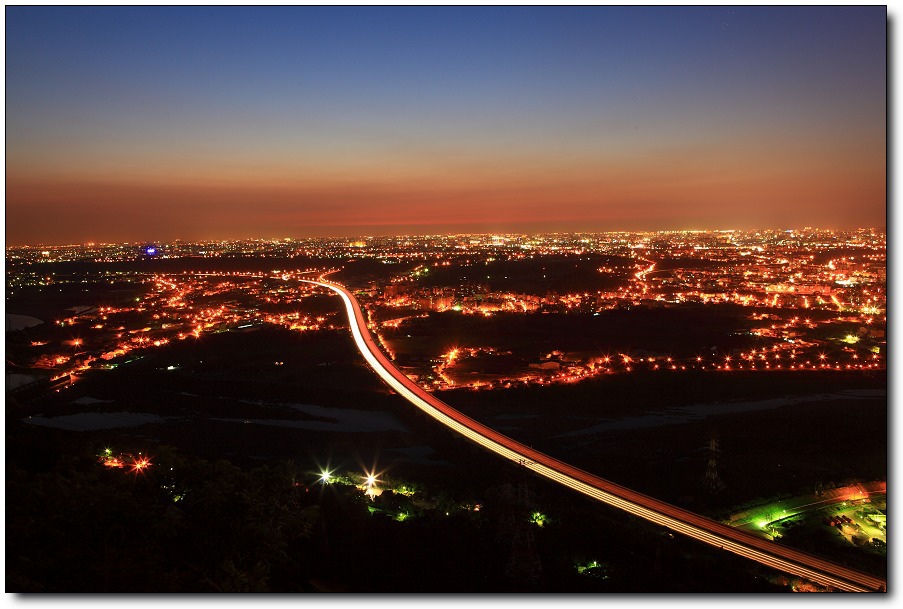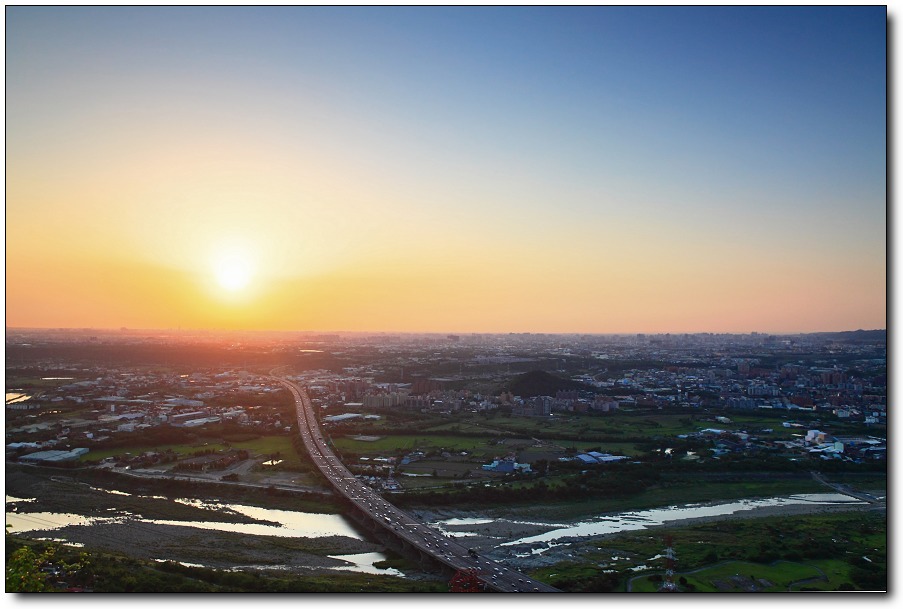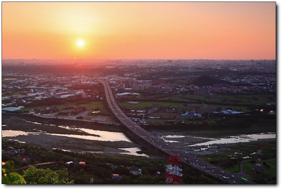 蜿蜒的國道三號就像是巨龍一樣橫躺在大地之上,在加上尚有餘溫的夕陽,互相輝映相得益彰!