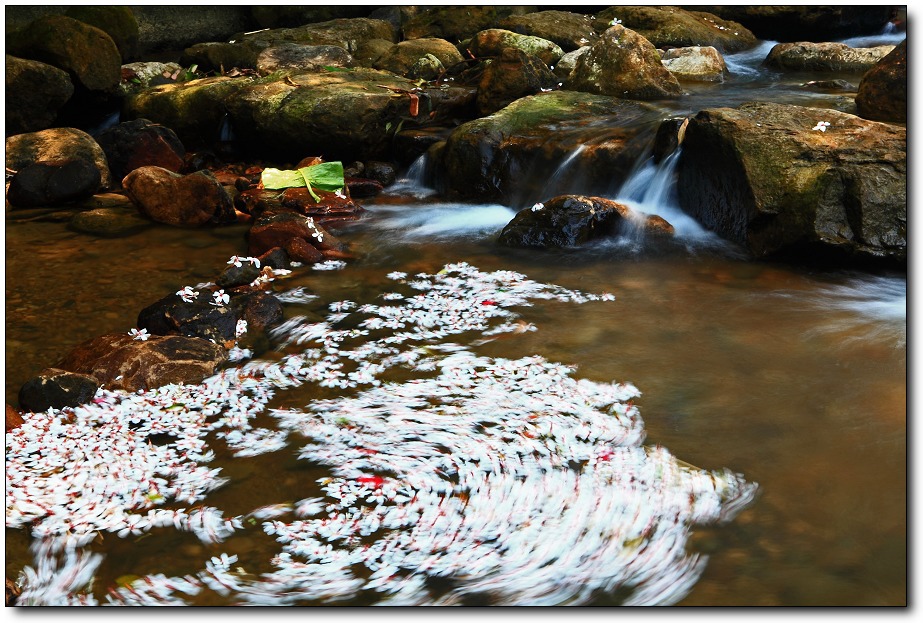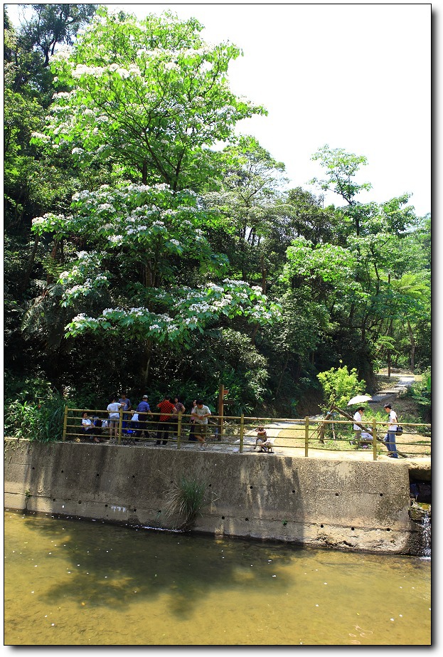 富民親水公園也是基隆的賞桐花盛地,桐花隨風飄落到河裡